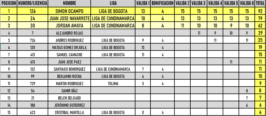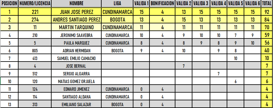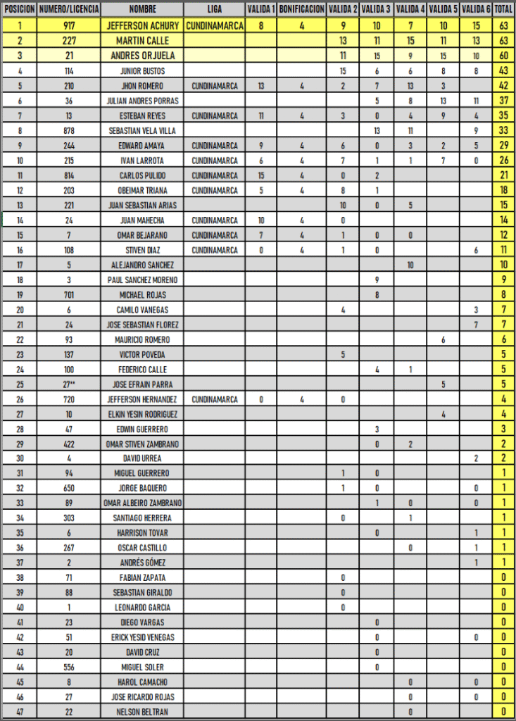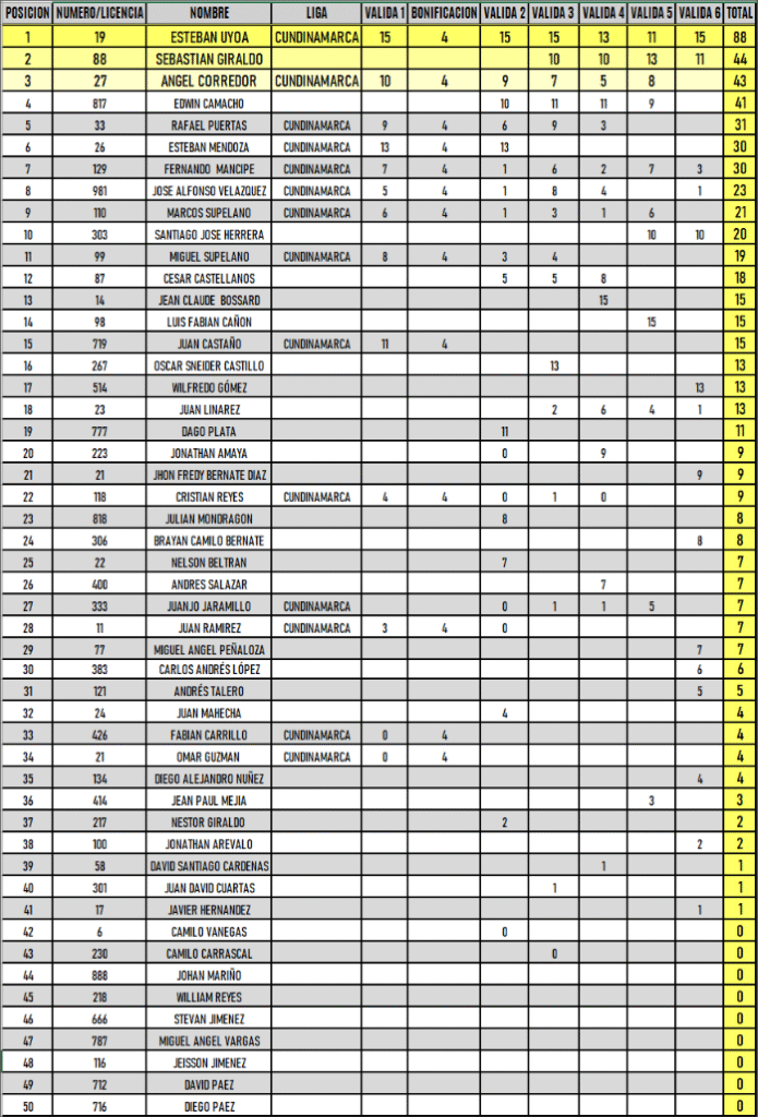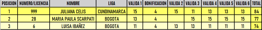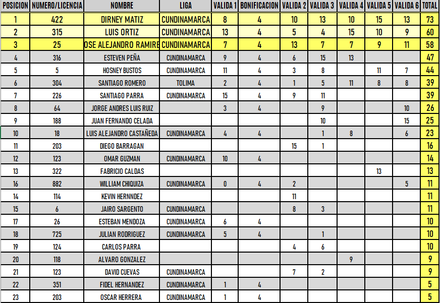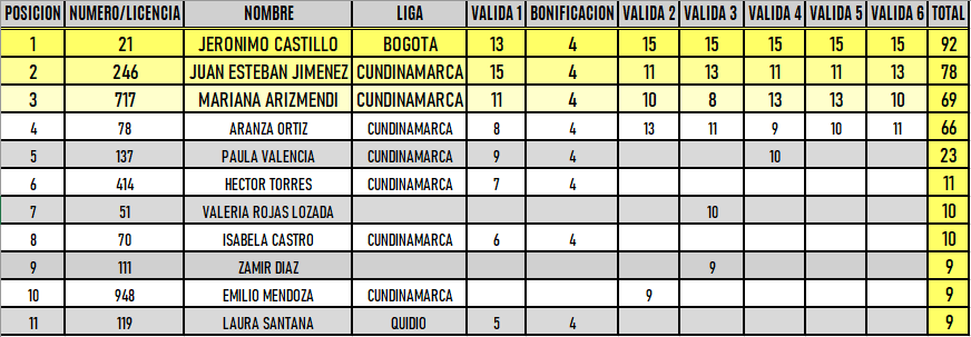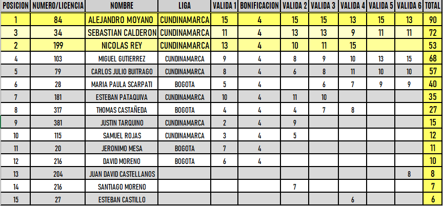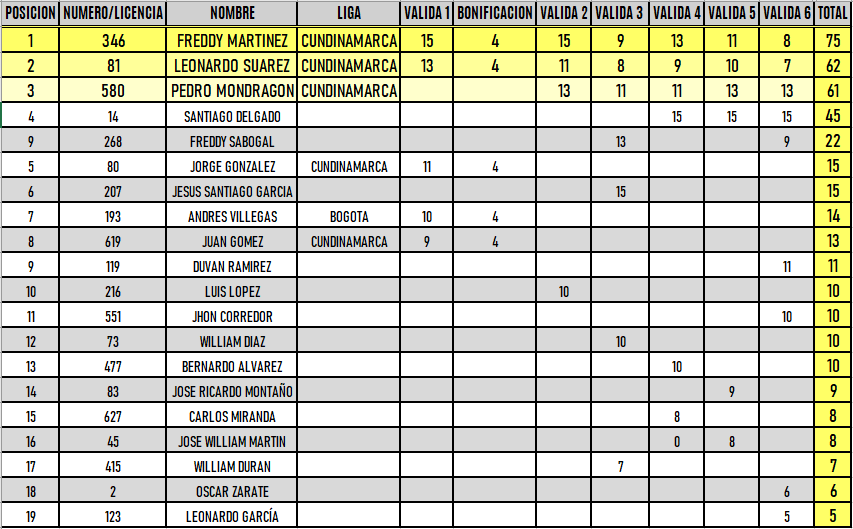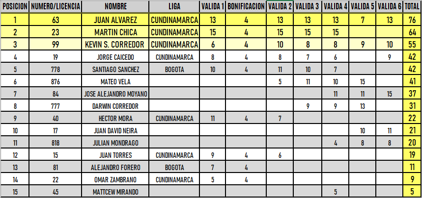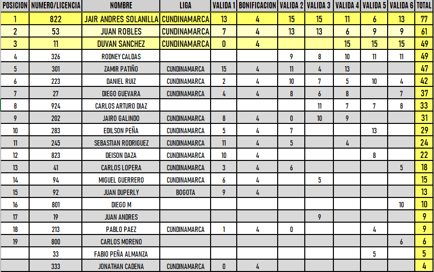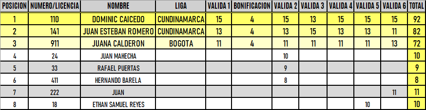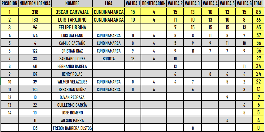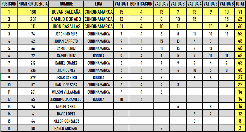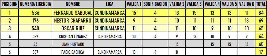 RESULTADOS 6TA VÁLIDA (Facatativá)