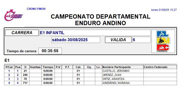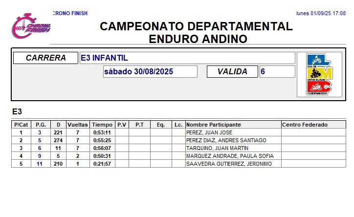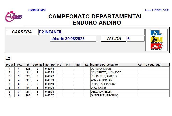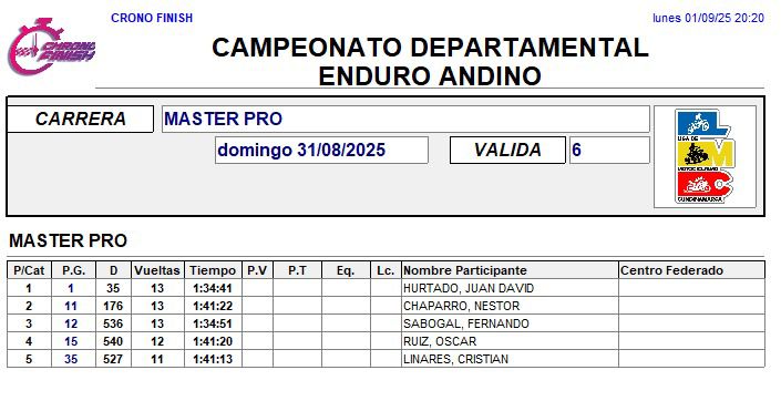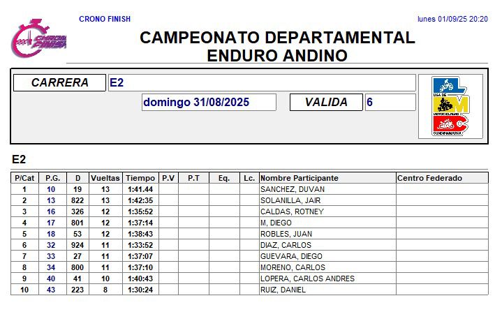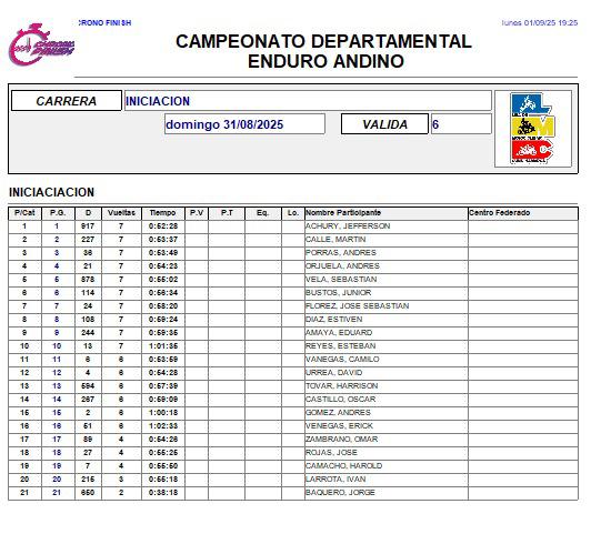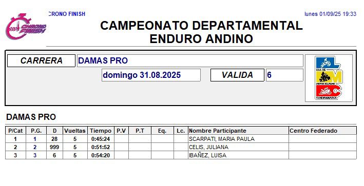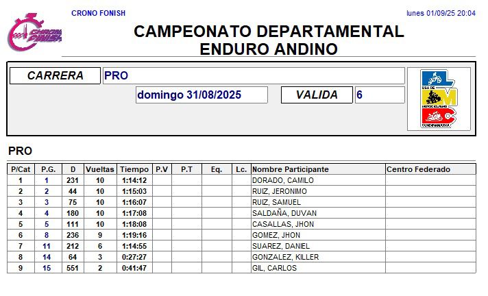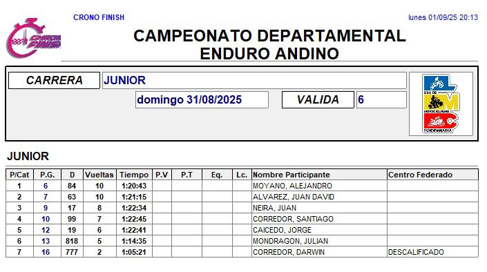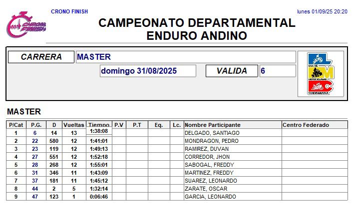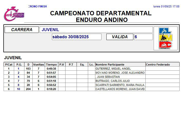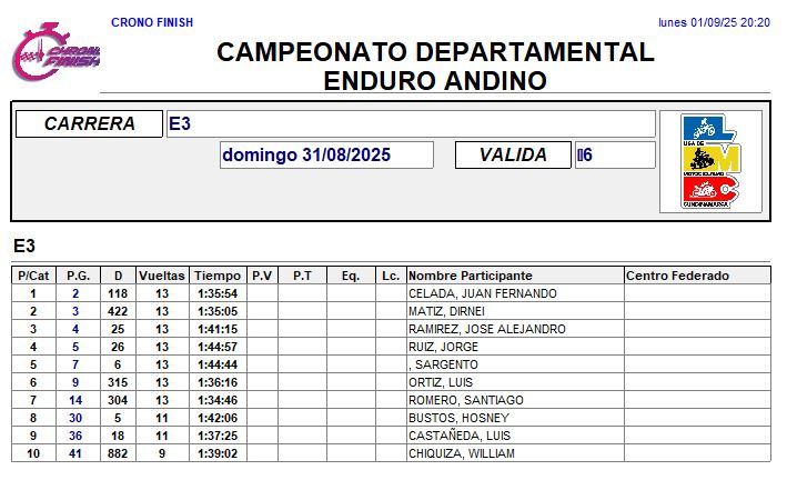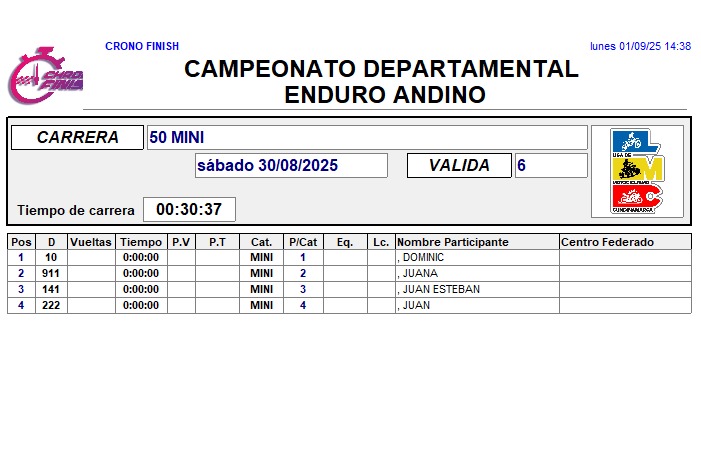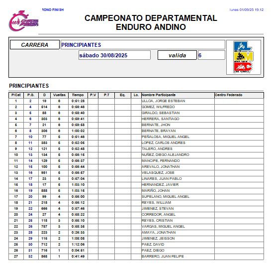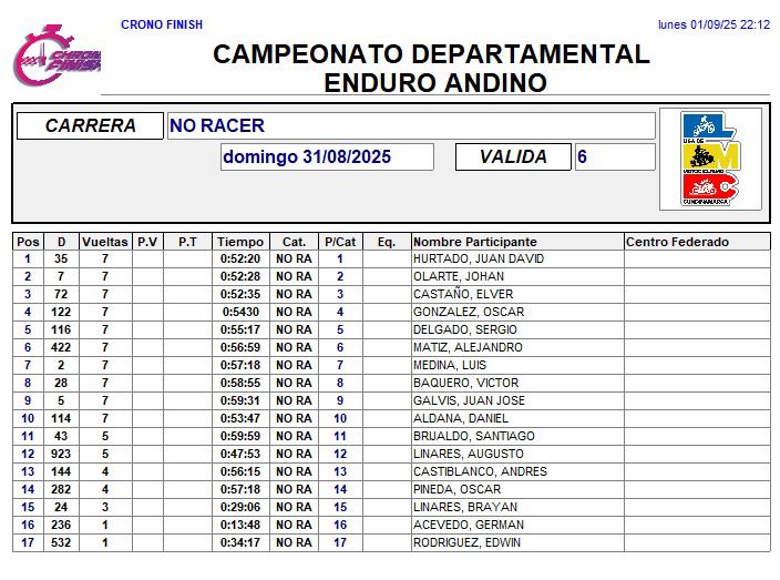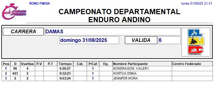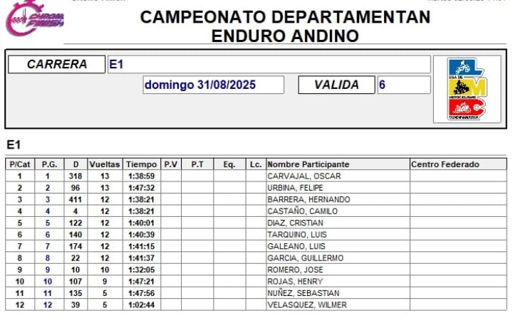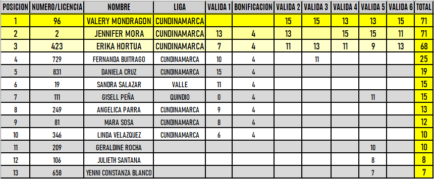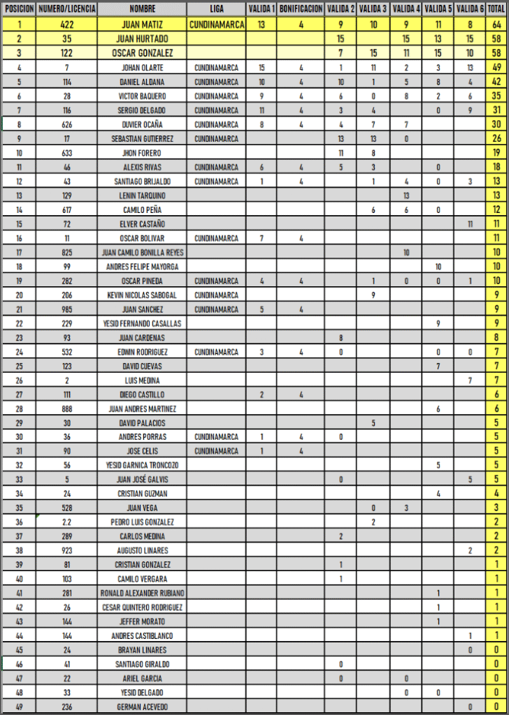 RESULTADOS 6TA VÁLIDA (Facatativá)